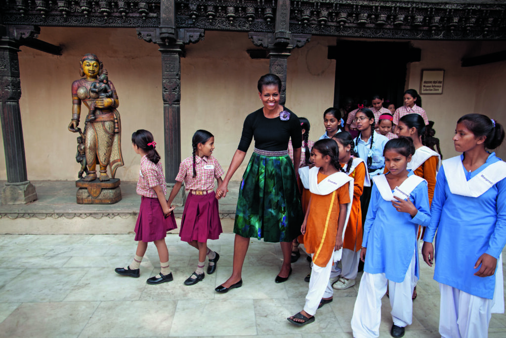Es ist ein Blick in die – und hier stimmt’s sogar – guten alten Zeiten, als man noch mit Begeisterung oder zumindest wohlwollendem Interesse nach Washington D.C. blickte, wo ein charismatisches Paar im Weißen Haus lebte und dieser Zeit auch modisch seinen Stempel aufdrückte. Man schwelgt beim Durchblättern in Bildern von ihren Wahlkampfauftritten, der Amtseinführung und den Inaugurationsbällen, von ihren Auslandsreisen und Besuchen in aller Welt. Man sieht sie bei kulturellen Events, bei Sportereignissen, aber auch in ruhigen Momenten, und obwohl Barack Obama einige Auftritte hat, so steht doch Michelle ganz im Mittelpunkt: ihr Stil, ihr Geschmack, ihre Mode. Ihr ganz eigener Michelle-Obama-Look und was ihn bis heute so besonders und ikonisch macht.